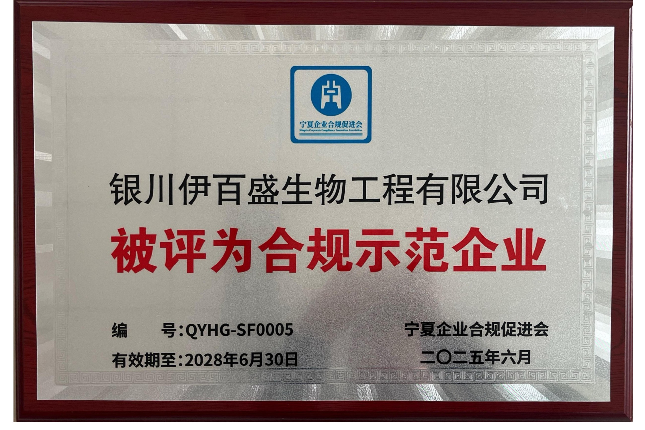 銀川伊百盛被評為合規示范企業
