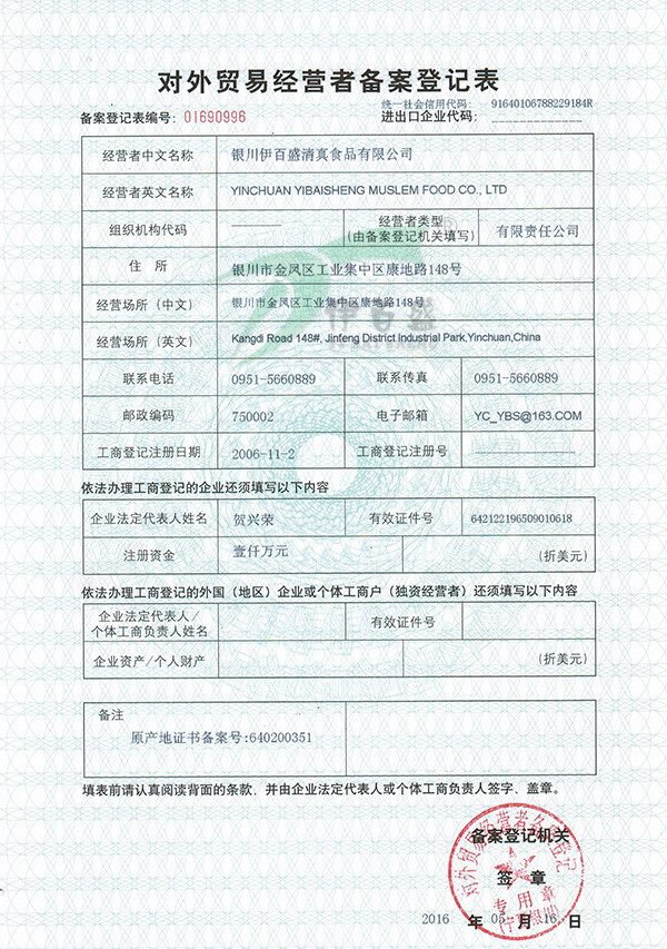 對外貿易經營者備案登記表